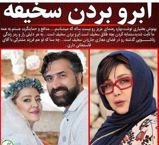 بهنوش بختیاری هم نوشت: بهاره رهنمای عزیر رو 20 ساله میشناسم. به همه ما ثابت شدهای. دستمایه کردن بچه طلاق سخیف است. آبرو بردن سخیف است. چه بسی تو هم فرزند مشترکی با آقای قاسمخانی داری و هرگز بیحرمتی بین تو و خانواده سابقات وجود نداشته. همه به همسرت حق دادن.