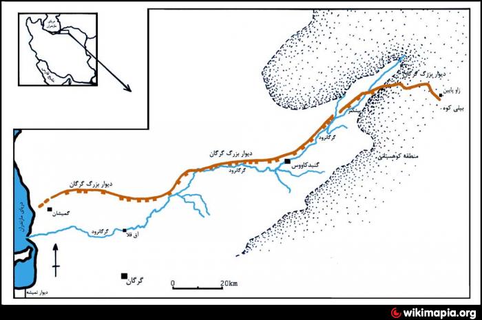 بقایای باقیمانده دیوار گرگان که سالها زیر خاک مدفون بود از ساحل کمش تپه در جنوب رود اترک و شمال بندر ترکمن آغاز میشود، اما انتهای آن به روشنی مشخص نیست.