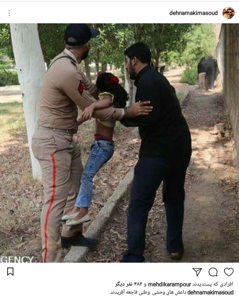 مسعود ده نمکی نیز در واکنش به حادثه تروریسی صبح امروز در شهر اهواز در اینستاگرام نوشت: «داعش های وحشی وطنی فاجعه آفریدند. حمله مسلحانه به تماشاچیان و رژه نیروهای مسلح در اهواز.»