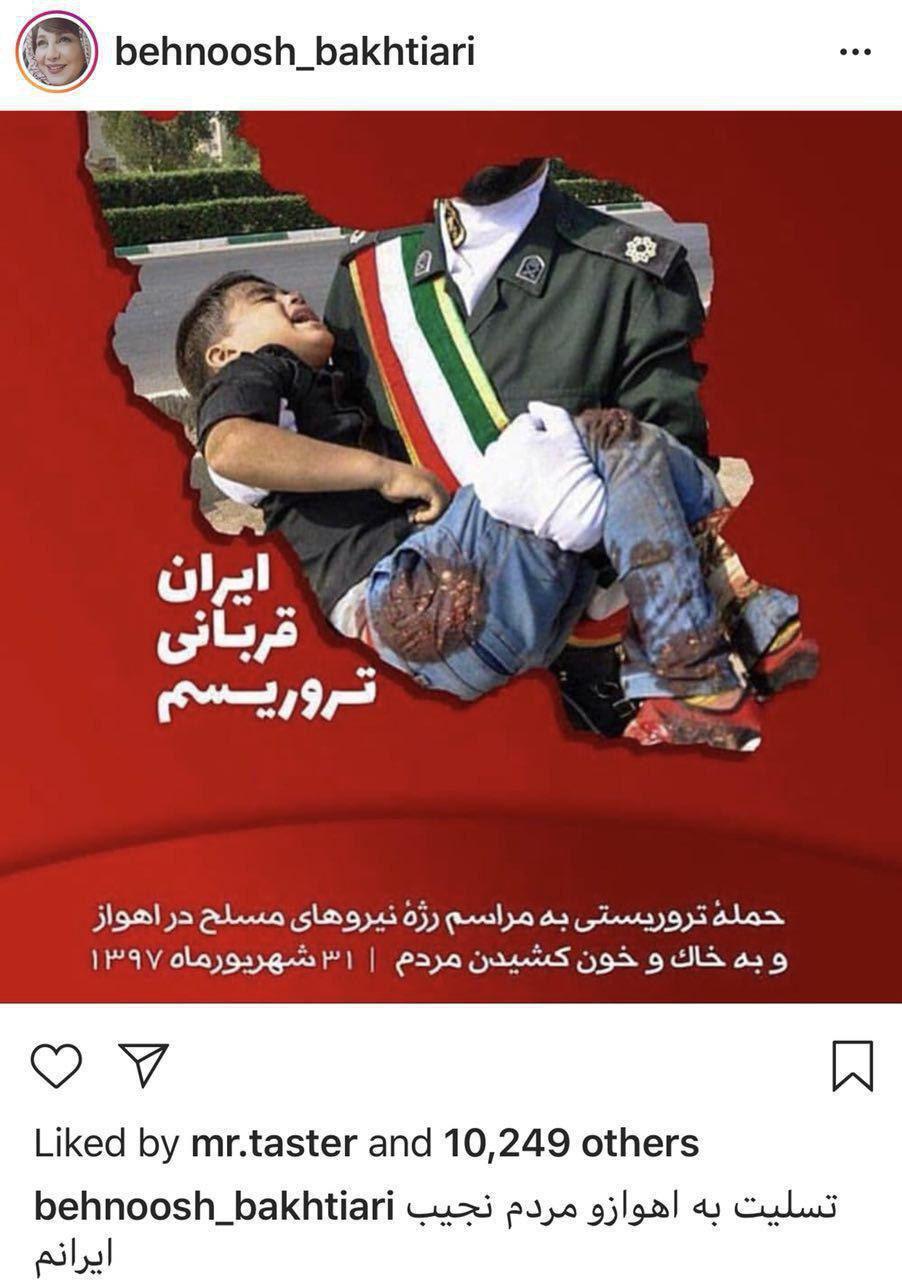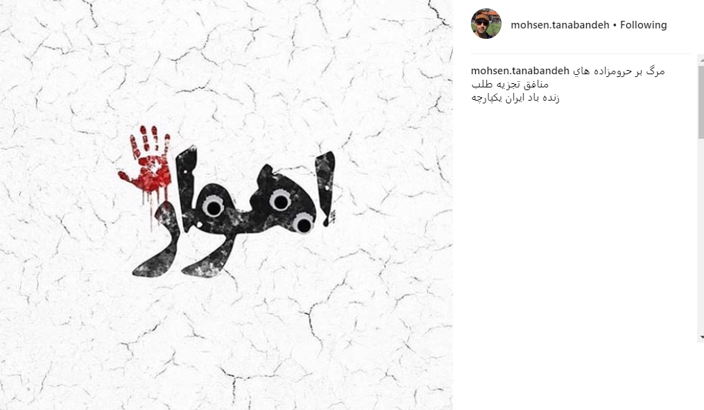 محسن تنابنده، بازیگر و کارگردان سینما و تلویزیون، با انتشار تصویری گرافیکی در اینستاگرام، به حوادث تروریستی امروز صبح اهواز واکنش نشان داد.