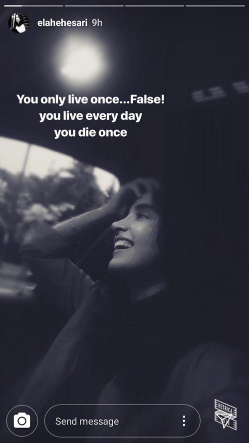 حصاری با انتشار عکس‌های زیر در اینستاگرامش نوشته است:" تو فقط یک بار زندگی می‌کنی. این غلط است. تو هر روز زندگی می‌کنی و یک بار می‌میری."
