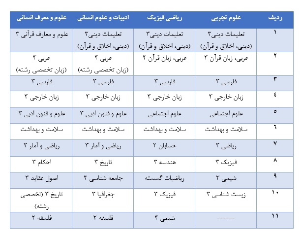 شورای عالی آموزش و پرورش جدول دروس نهایی پایه دوازدهم شاخه نظری را اعلام کرد.