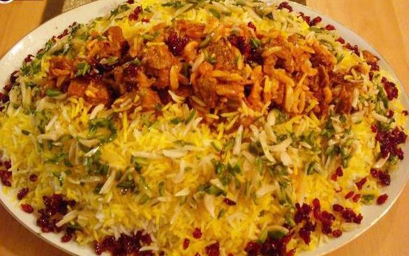کنار این غذای لذیذ برای تزئین سیب زمینیهای درشت سرخ کرده و زرشک هم میتوانید قرار دهید.