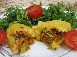 به اندازه یک قاشق داخل آن مخلفات بریزید. خمیر را از دو گوشه روی هم قرار دهید و ببندید میتوانید آن را کاملا گرد کنید و میتوانید هر شکلی که خواستید به آن بدهید بعد دوباره کبههای درست شده را داخل روغن قرار دهید تا کاملا طلایی شود.