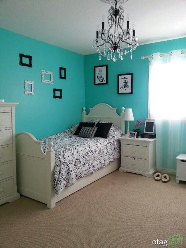 فیروزهای ذاتا یک رنگ رمانتیک است، بنابراین میتوان فیروزهای را یک رنگ عاشقانه قلمداد کرد که به واسطه آرامشی که با خود به همراه دارد مناسب اتاق خواب است.