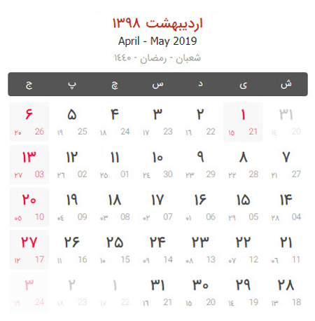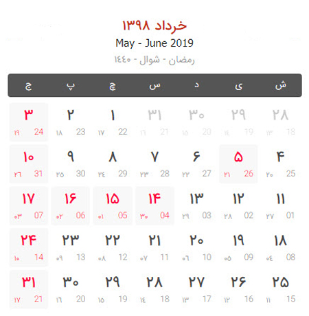 ۱۶ خرداد تعطیل به مناسبت عید سعید فطر [ ٢ شوال ]