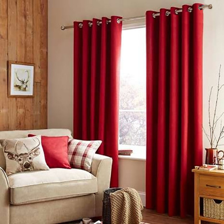 رنگ قرمز، باعث افزایش اشتها، و افزایش انرژی می گردد و افراد را شادتر می کند. بنابراین پرده هایی با رنگ قرمز می تواند برای آشپزخانه، نشیمن و اتاق غذاخوری مناسب باشد.