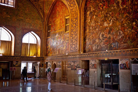 در اینجا طرح هایی شفاف و طلایی را می بینید که چشم ها از تماشایشان شیر نمی شود، بعضی از این نقاشی ها در دوره قاجار کشیده شده اند و وقایع تاریخی زمان خود را به تصویر می کشند. این کاخ آنقدر باشکوه و خاطره انگیز است که شاید نتوان اصفهان را بدون آن تصور کرد کاخی که مطمئنا از مکان هایی است که گردشگران حتما از آن دیدن می کنند. بی دلیل نیست که بر روی کتیبه ای که جهت معرفی کاخ برای آیندگان به ثبت رسیده گفته شده که این کاخ مبارک ترین بنای دنیاست.