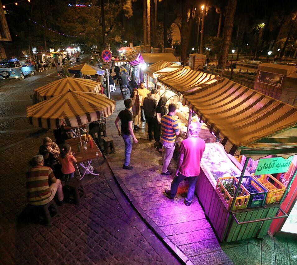 این خیابان که مابین میدان امام خمینی (ره)و میدان حسن‌آباد تهران واقع شده‌است از دوسال پیش را با راه‌اندازی کافه‌های سیار در طول خیابان شبهای خوشی را برای تهرانی‌ها رقم زده‌است. در ایام عید علاوه بر کافه‌های سیار این خیابان که از چای دمی تا ساندویچی بندری و بستنی می‌فروشند.،دو گروه موسیقی از ساعت ۱۱ صبح تا۷ غروب در خیابان ساز می‌زنند. ابتدای خیابان دو نوازنده با سورنا و دهل موسیقی سنتی نوروز را می‌نوازند و کمی که وارد خیابان می‌شوید درست روبه‌روی باغ ملی گروه موسیقی خیابانی آهنگ‌های شاد فولکلور می‌نوازند و تماشاچیان را به وجد می‌آورند.