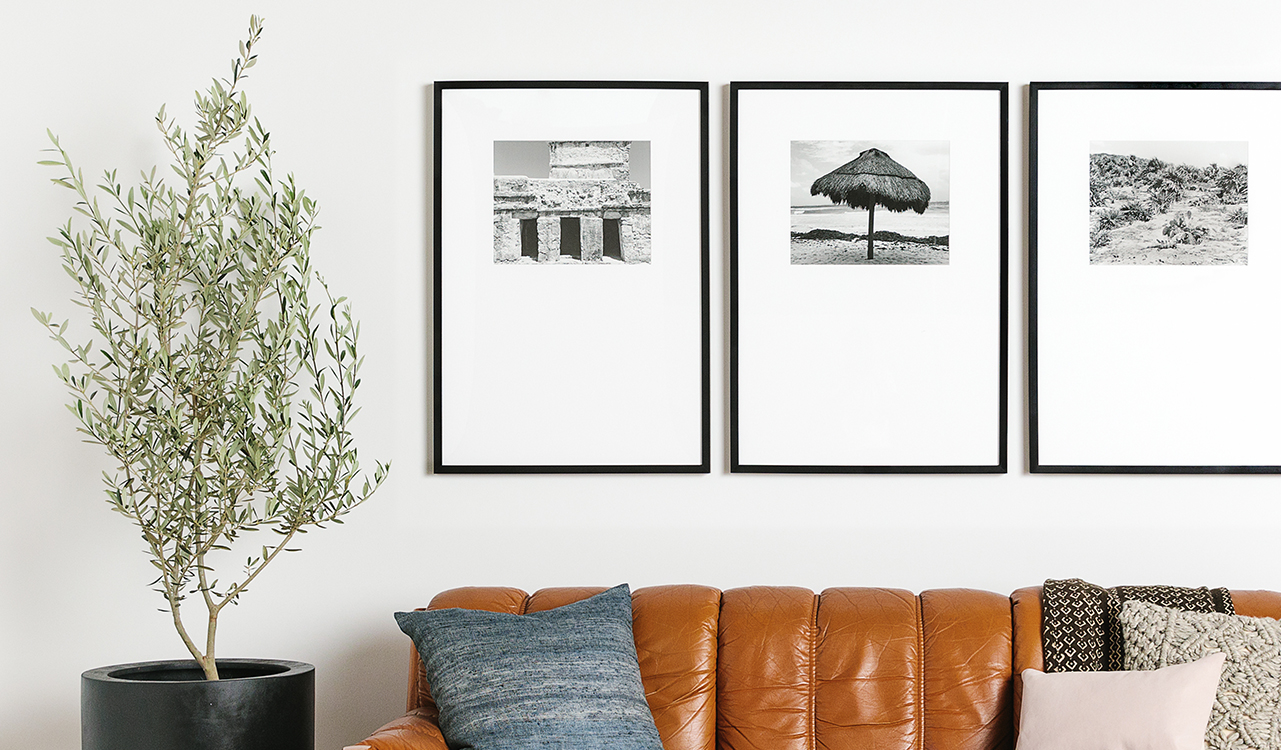 روی فریم های یکنواخت برای ایجاد یک تصویر هماهنگ تمرکز کنید. این موضوع کمک می کند گالری تان شبیه یک سبد پر از اشیا با رنگ های مختلف نباشد. توازن کلی اتاق را در نظر داشته باشید. دکور شلوغ یک دیوار و خالی ماندن سایر دیوارها نظم و تعادل اتاق را بر هم می زند. شما می توانید برای چیدمان یک دیوار بزرگ از 4 قاب کوچک در یک سمت و از 2 قاب متوسط و متوازن در سمت دیگر استفاده کنید.