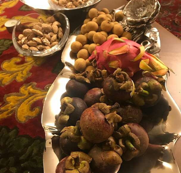البته میوههایی که استفاده میشود خیلی متنوع نیست. بیشتر میوههای استوایی که در حال حاضر در کشور ما زیاد است مانند آناناس و آوکادو و یک نوع میوه روتین به همان شکل که توضیح دادم سرو خواهد شد.