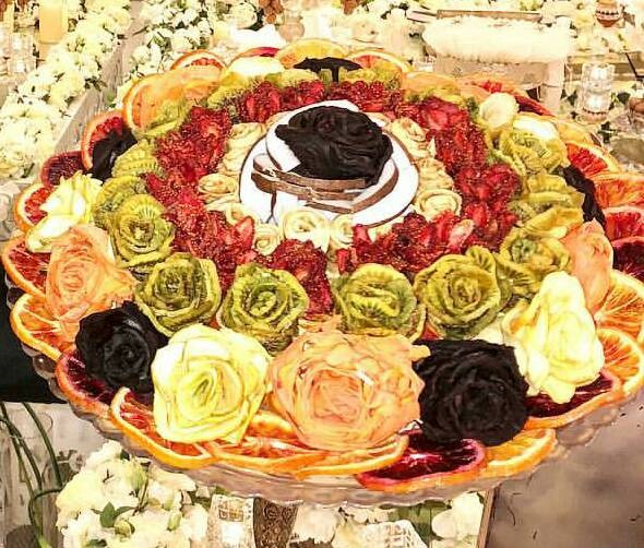 بجز شام، خوراکیهای مغذی دیگر مانند میوه و انواع شیرینی هم باید به شکل خاص سرو شود. میوهها به صورت درسته روی میز یا بشقاب قرار نمیگیرد. میوهها را قاچ می کنند یا در اشکال مختلف خرد می کنند و در خلال های مخصوص می گذارند و سپس در دیسهای مخصوص برای مهمان ها سرو میکنند. ضمن این که در این نوع عروسی ها، میوهها به صورت کوکتل هم سرو میشود.