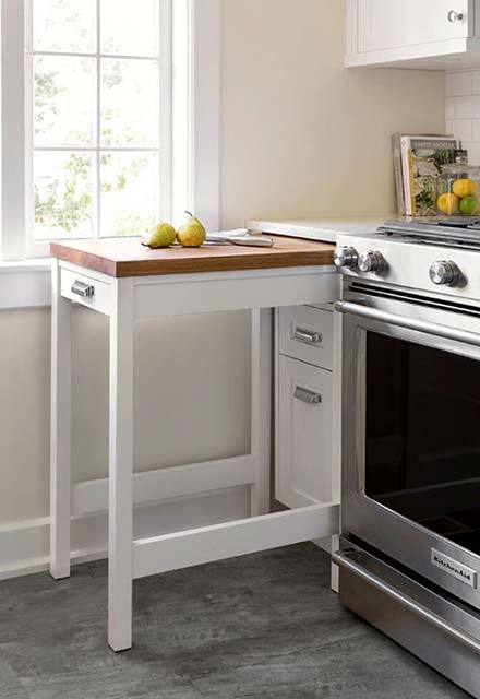 در حال حاضر همه چیز در دنیا کار آمد و هوشمندانه طراحی می شود .پس چرا میز کار آشپزخانه شما اینگونه نباشد ؟شما می توانید میز کار آشپزخانه خود را به صورت کشویی تعبیه کنید تا هم فضای کم تری را اشغال کند و هم باعث خلاق دیده شدن شما گردد.