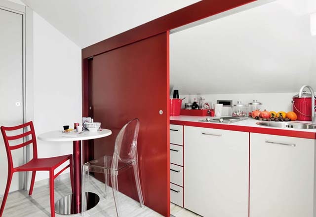 اگر شما یک خانه آشپزخانه به سبک آمریکایی دارید، با یک پانل کشویی می توانید بین آشپزخانه خود و اتاق خود فاصله ایجاد کنید، که علاوه بر آن کمک می کند که وسایل آشپزخانه را پنهان کنید.