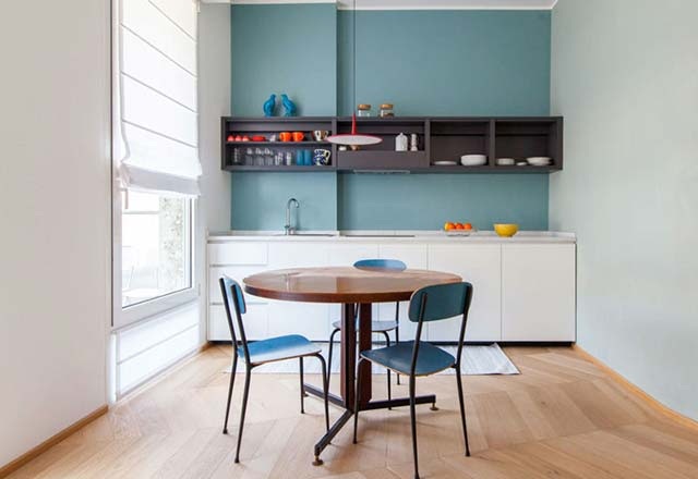 اگر دیوارهای آشپزخانه شما به رنگ تیره است حتما کف آشپزخانه شما باید روشن باشد.تضاد در مکان های کوچک باعث عمق بخشیدن به فضا می شود در نتیجه فضای شما بزرگتر دیده می شود.