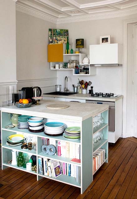 اگر قفسه های آشپزخانه شما باز است ،قفسه های خود را فقط با ظروف تزیین نکنید استفاده از کتاب ،لامپ و … می تواند ایده خوبی برای زیبا نشان دادن آشپزخانه شما باشد.