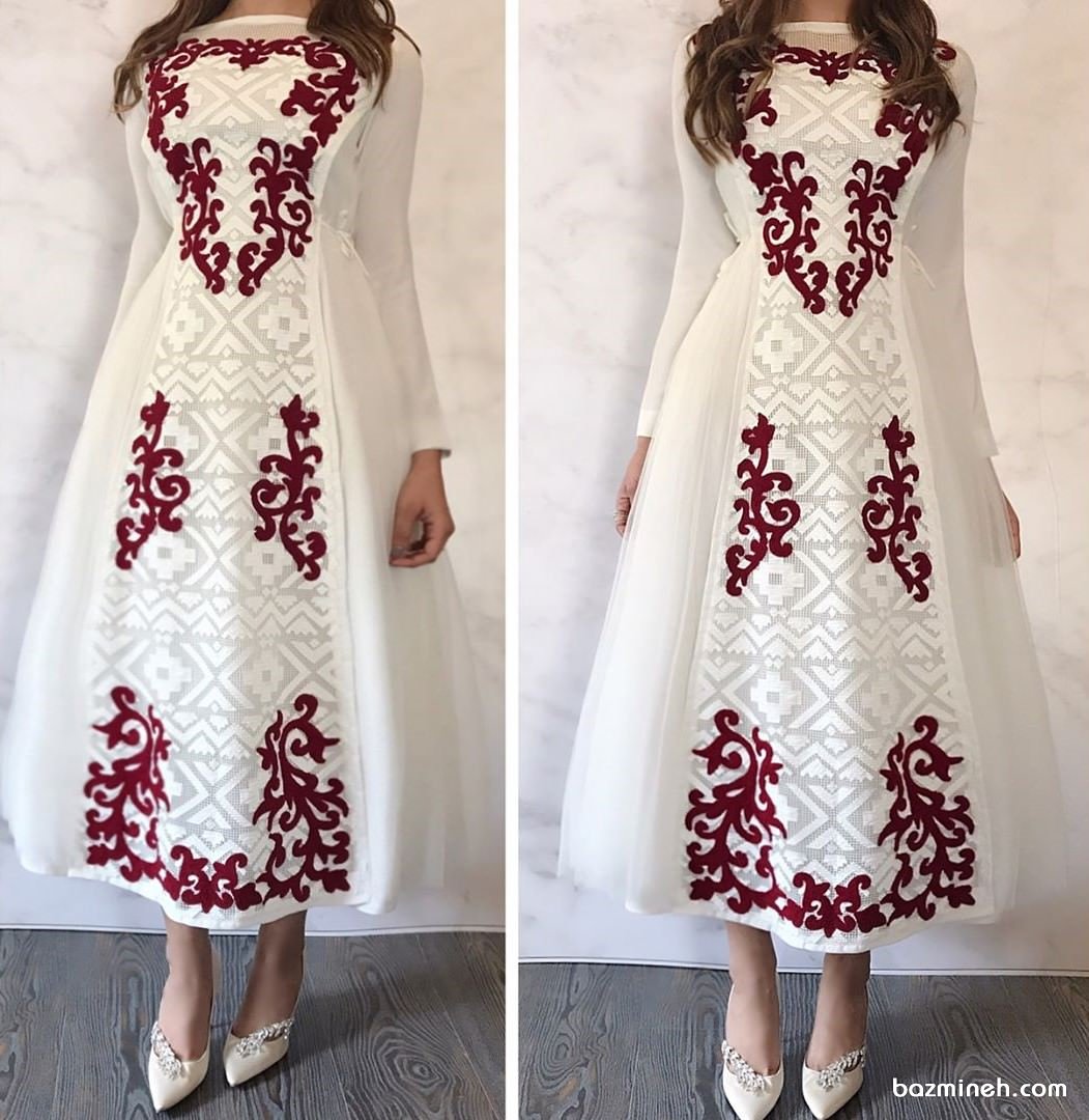 لباس عروس ایرانیان قدیم قرمز رنگ بوده است. اگر فردی اهل توجه به فرهنگ و تمدن هستید می توانید از لباسهای محلی زیبا برای حضور در محضر استفاده کنید اما اگر دوست دارید لباس سفید به تن داشتهباشید دامنهای چیندار با سارافنهای سفید میتواند ایده مناسبی برای این کار باشد.