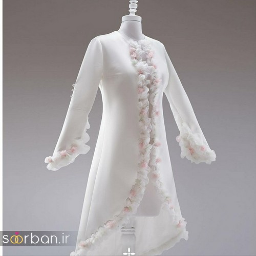 اگر اصرار به پوشیدن لباس سفید هم دارید از مانتوهایی که با طور تزئین شده استفاده کنید. تور نماد زیبایی یک عروس است بنابراین میتواند برای لباس عقد محضری مناسب باشد.